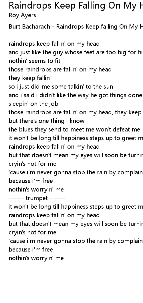 | those raindrops are fallin' on my head, they keep fallin' | |