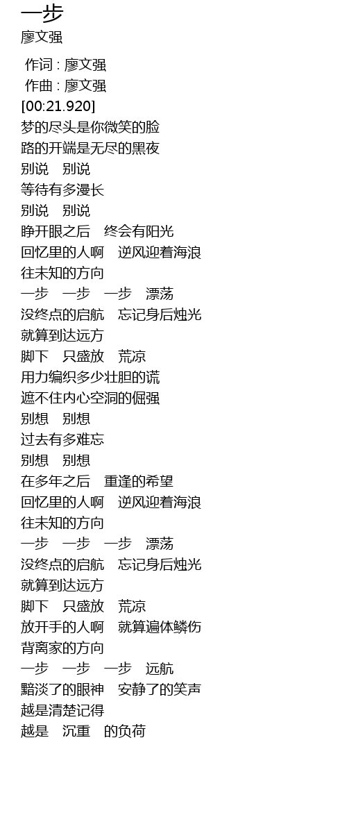 | [02:04.900] | 一步 一步 一步 漂荡 |