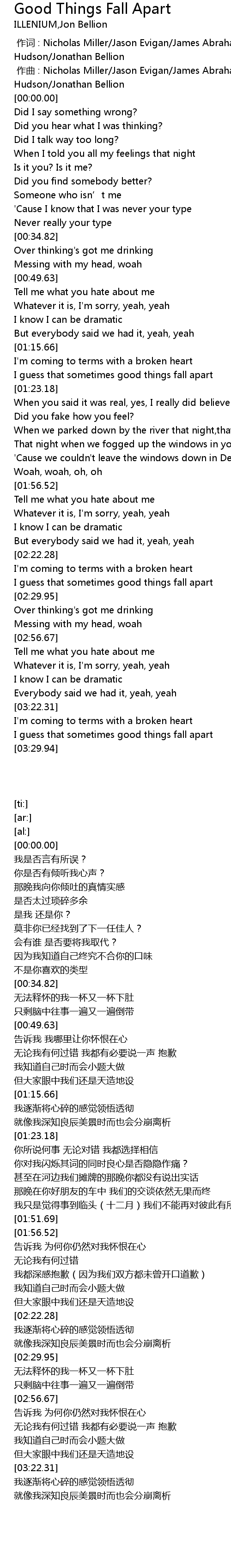 | [03:25.75] | I guess that sometimes good things fall apart |