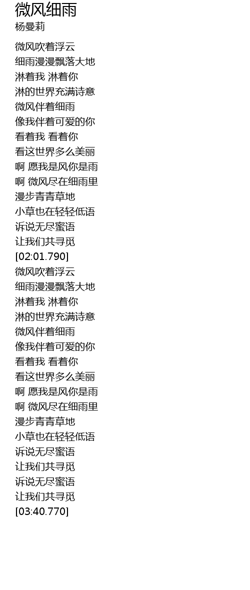 | [02:23.540] | 细雨漫漫飘落大地 |