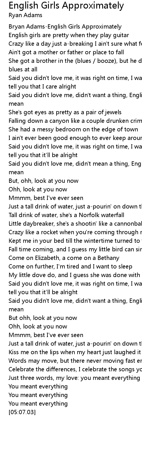 [01:52.23] Said you didn't love me, didn't mean a thing, English girls can be so mean