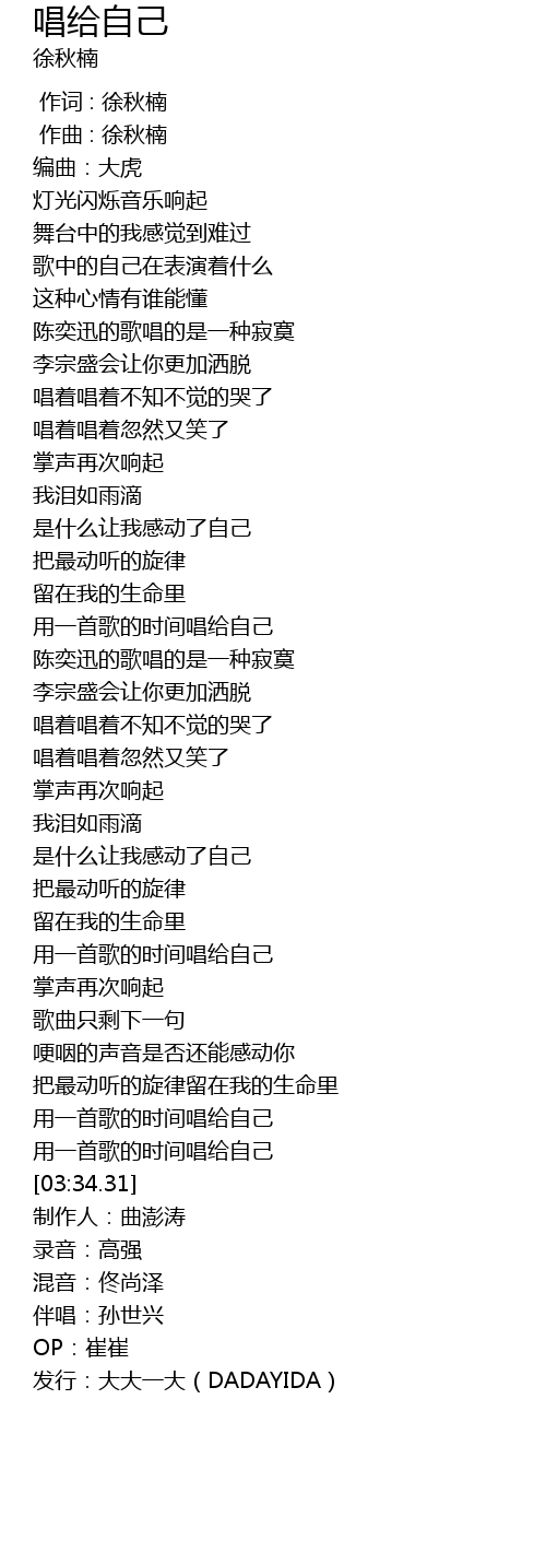 | [01:34.08] | 用一首歌的时间唱给自己 |