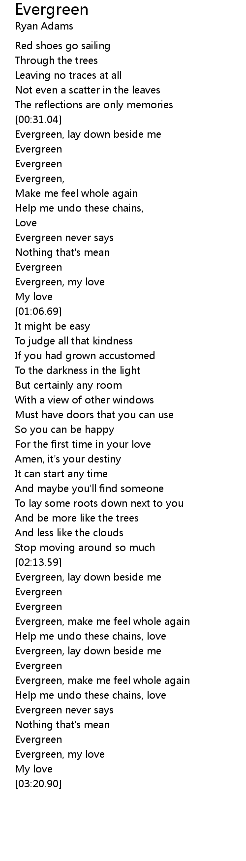 Evergreen, lay down beside me |