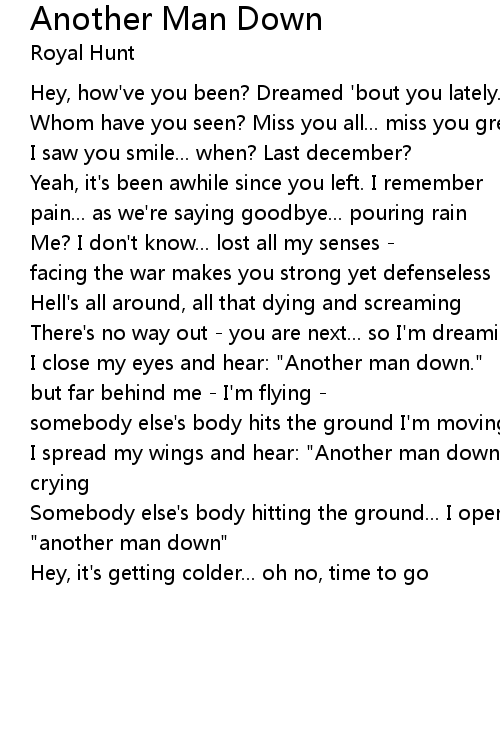 Somebody else's body hitting the ground... I open my eyes... and I am this "another man down" |