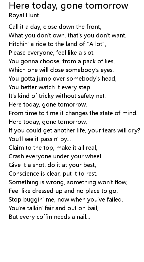 Here today, gone tomorrow, |