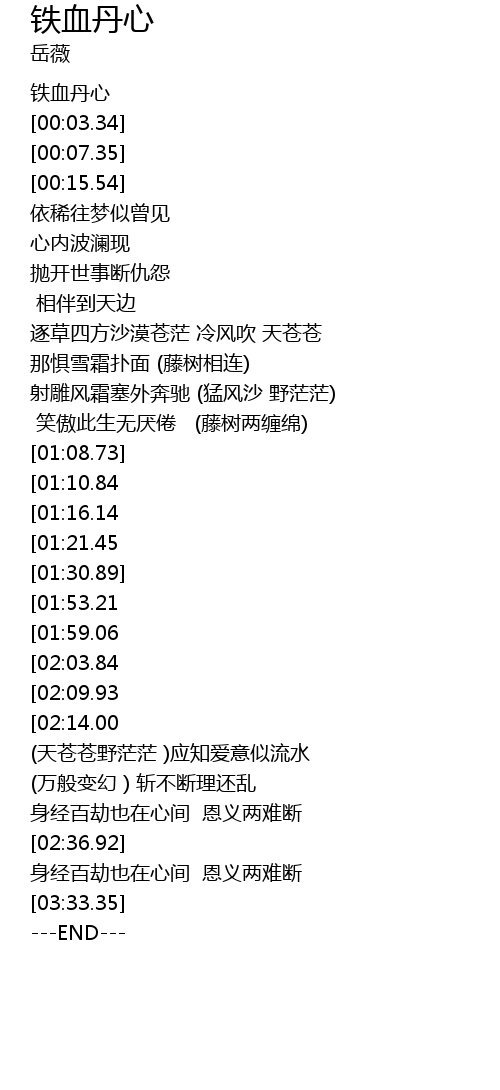 | [00:00.00] | 铁血丹心 |