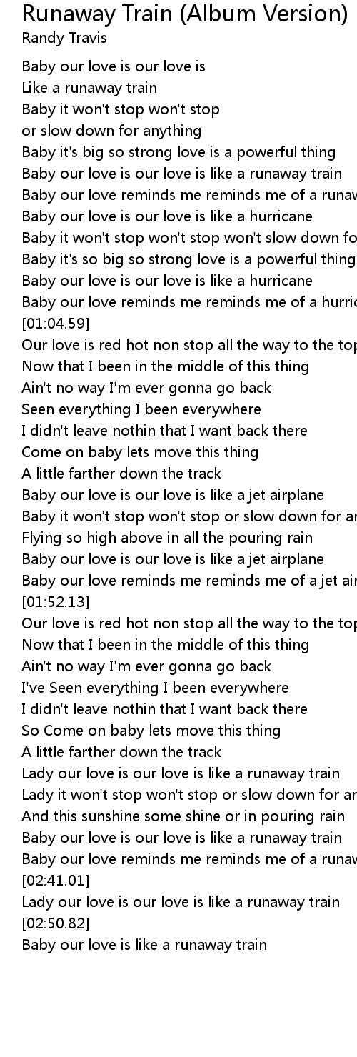 Lady our love is our love is like a runaway train |