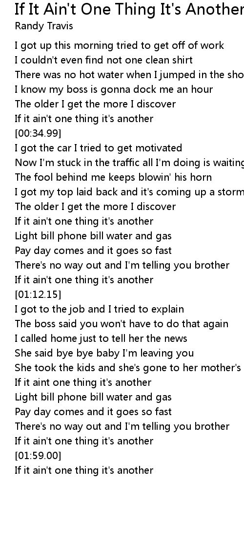 If it ain't one thing it's another |