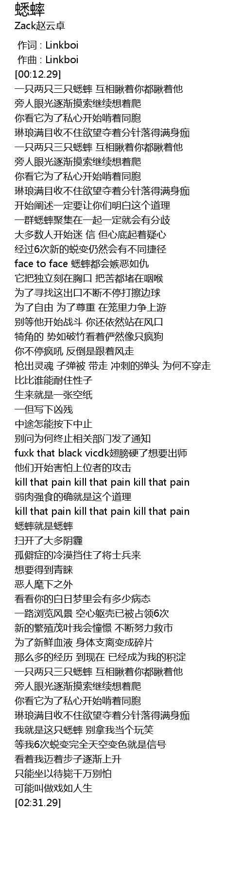 | [01:43.33] | 蟋蟀就是蟋蟀 |