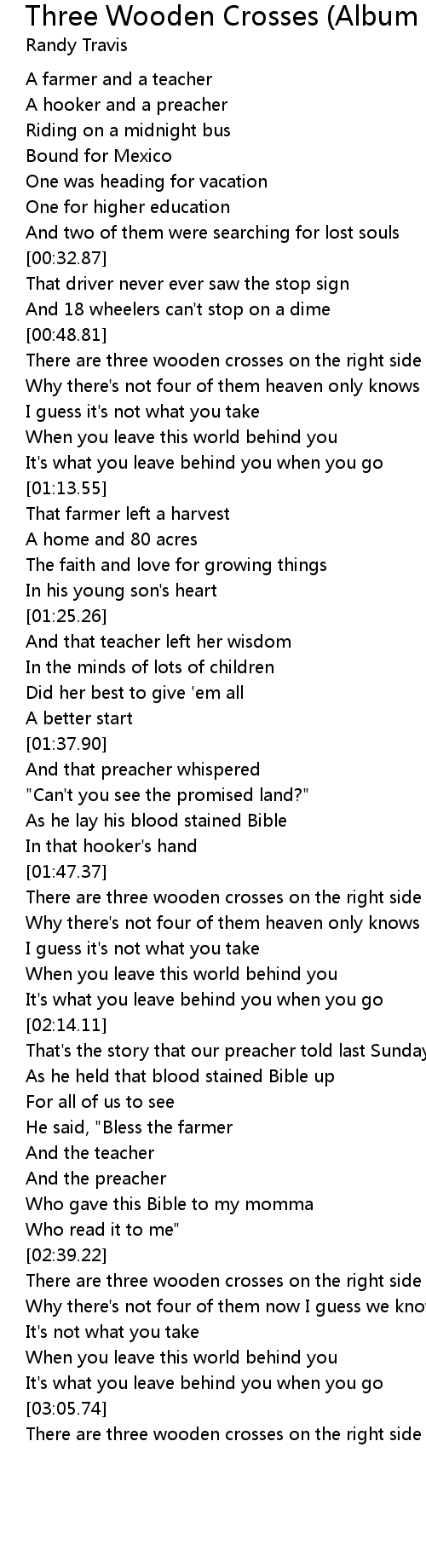 [03:06.36] There are three wooden crosses on the right side of the highway......