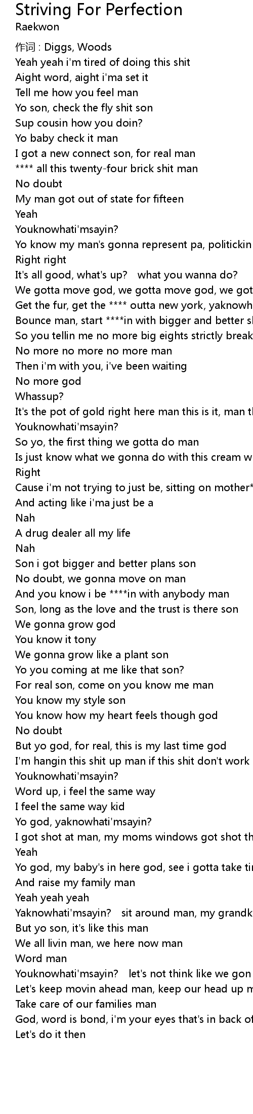 | For real son, come on you know me man | |