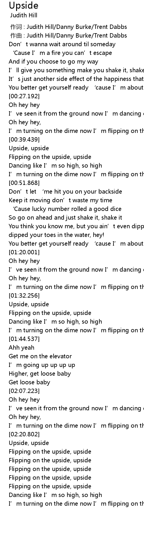 | [01:28.855] | I' m turning on the dime now I' m flipping on the upside |