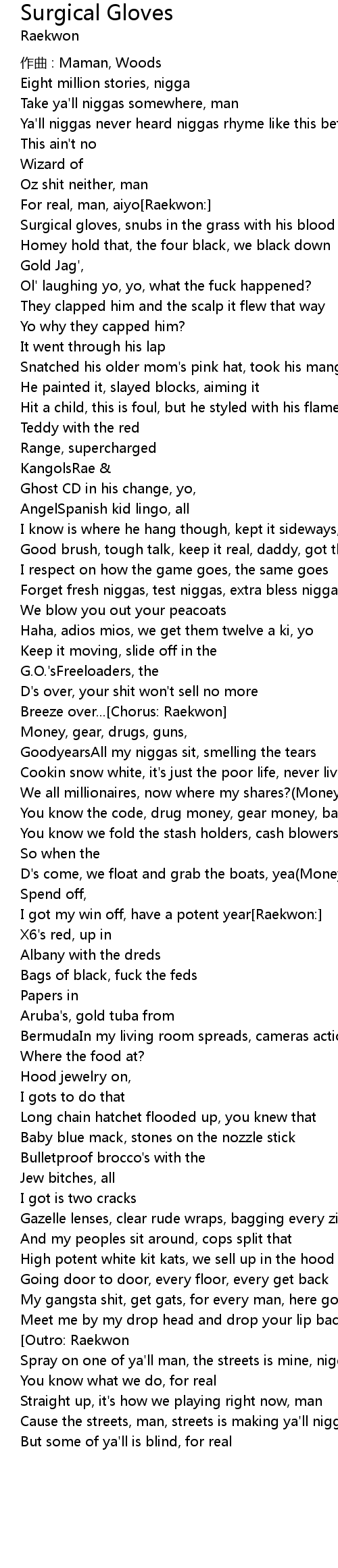 | Forty-seven quick claps, spray off on something[Chorus][Outro: Raekwon] | |