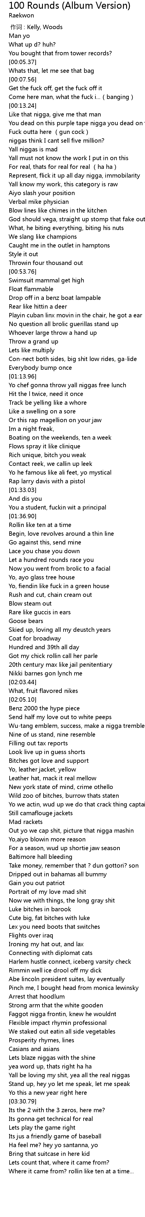 | [03:24.86] | Yall be loving my shit, yea all the real niggas |