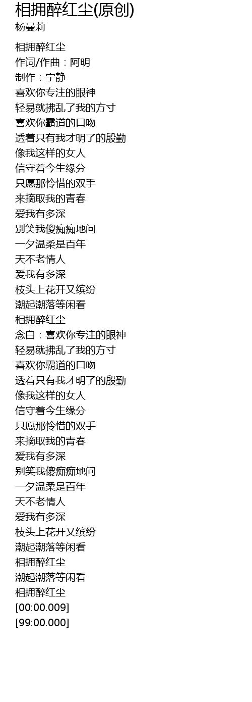| [03:36.94] | 相拥醉红尘 |