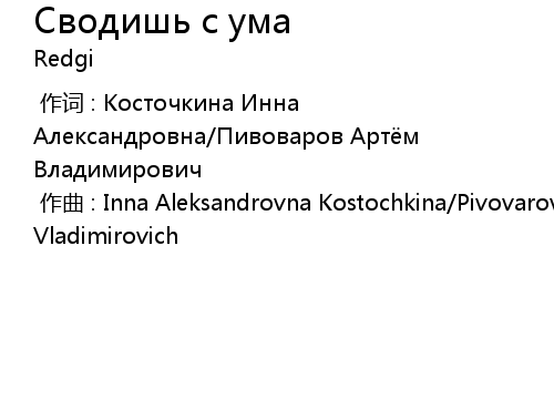 | [00:00.000] | zuo qu : Inna Aleksandrovna Kostochkina Pivovarov Artjom Vladimirovich |