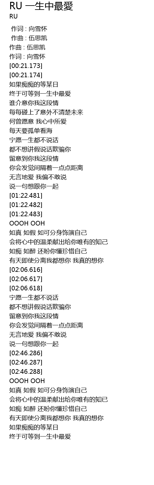 | [00:24.980] | zhong yu ke deng dao yi sheng zhong zui ai |