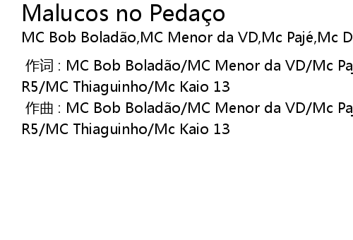 | [00:00.000] | zuò cí : MC Bob Bolad o MC Menor da VD Mc Pajé Mc Deko DK MC Renan R5 MC Thiaguinho Mc Kaio 13 |