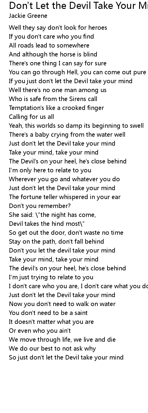 So just don't let the Devil take your mind