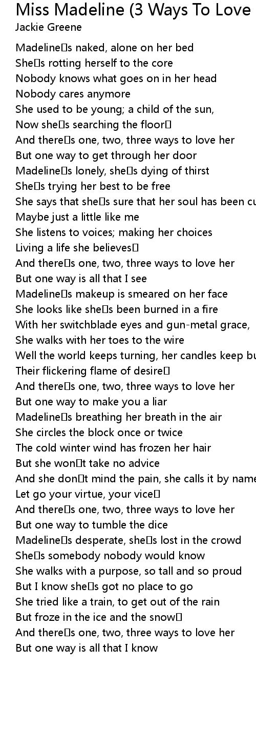 | Song | Miss Madeline (3 Ways To Love Her) |