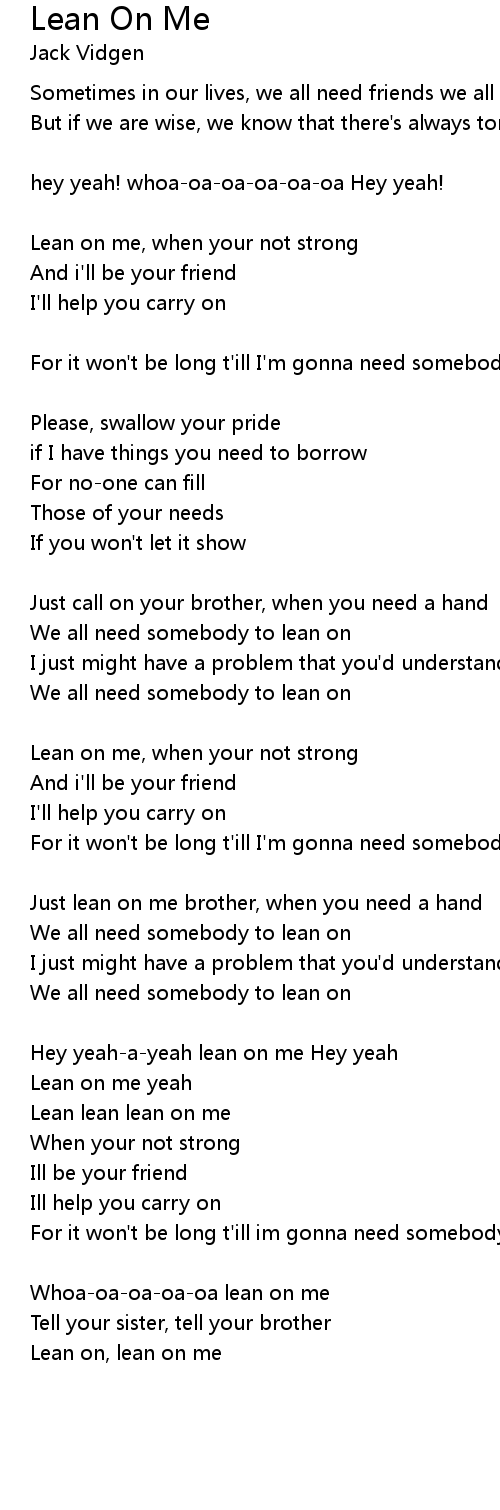 Lean on, lean on me |