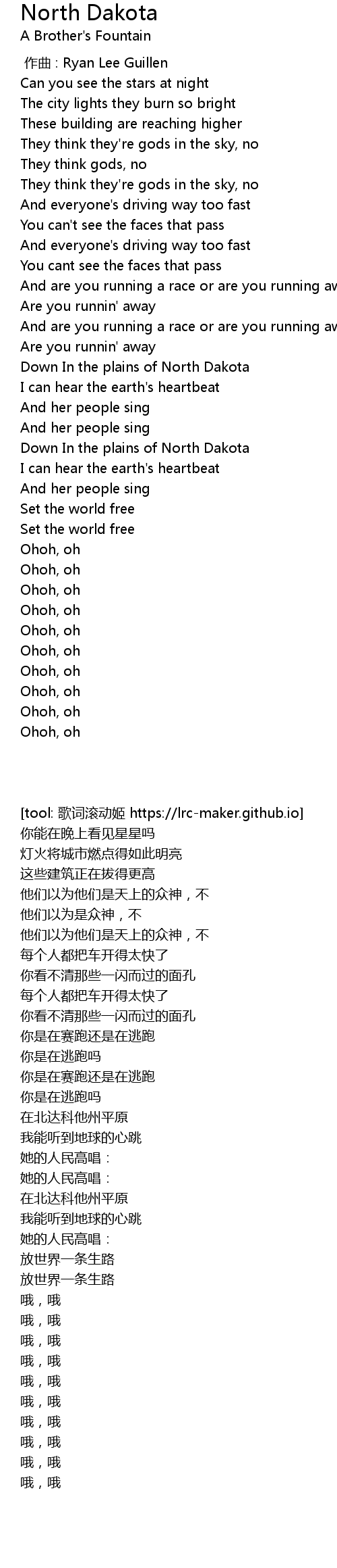 | Song | North Dakota |