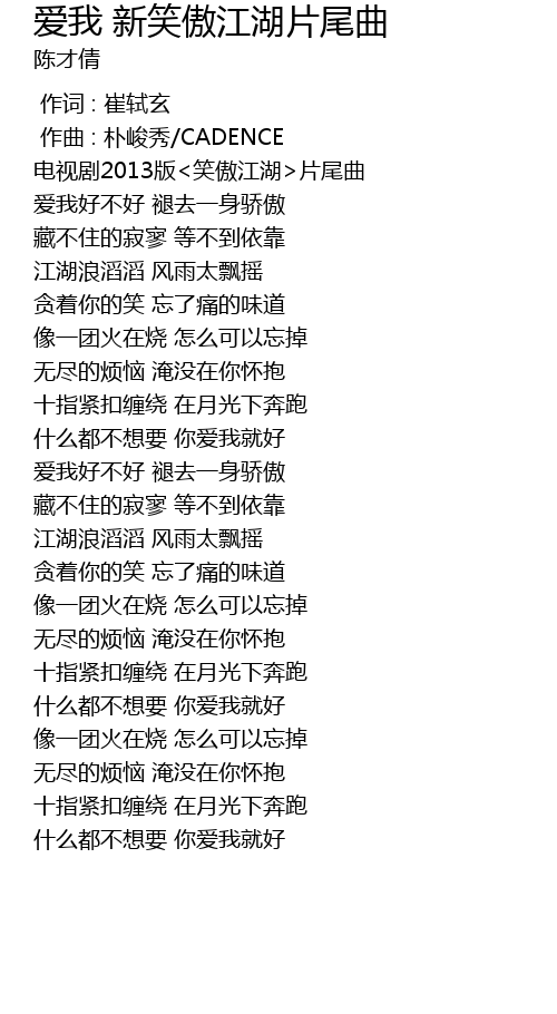 | [00:08.460] | 电视剧2013版<笑傲江湖>片尾曲 |