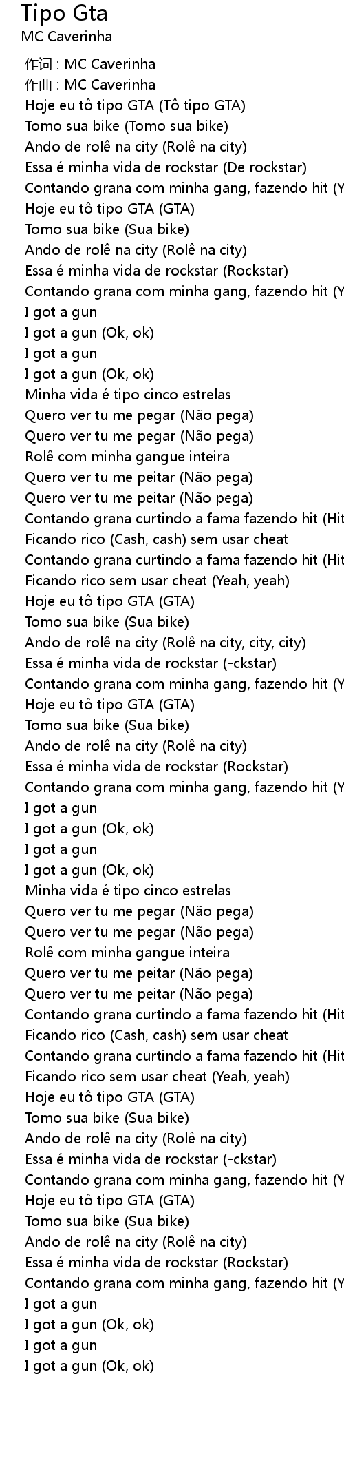| [00:14.838] | Hoje eu tô tipo GTA (Tô tipo GTA) |