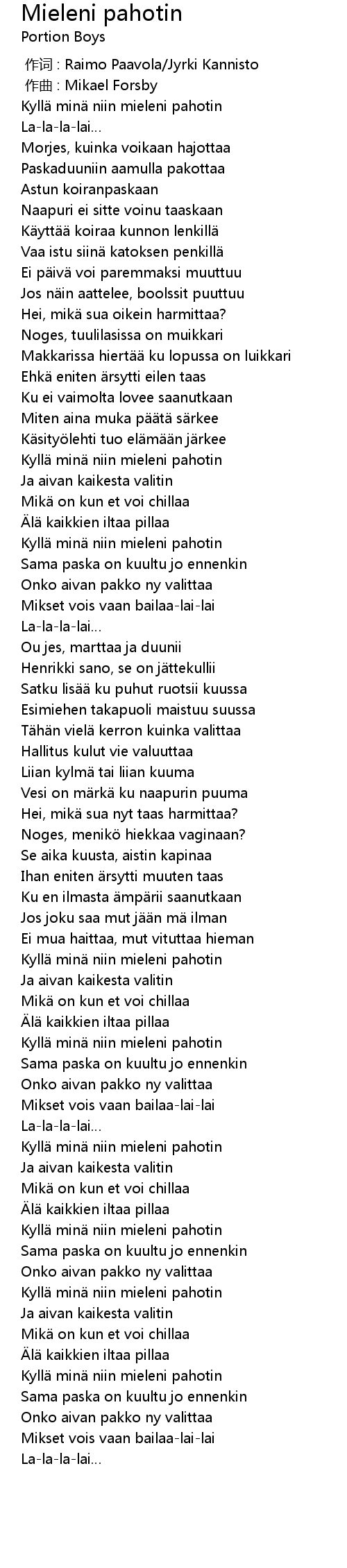 | Song | Mieleni pahotin |