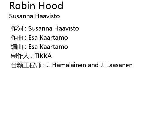 | [00:00.000] | 作词 : Susanna Haavisto |