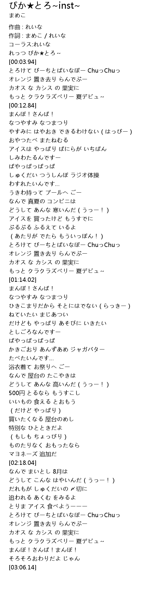 [00:04.11] とろけて ぴーちとぱいなぽー ChuっChuっ