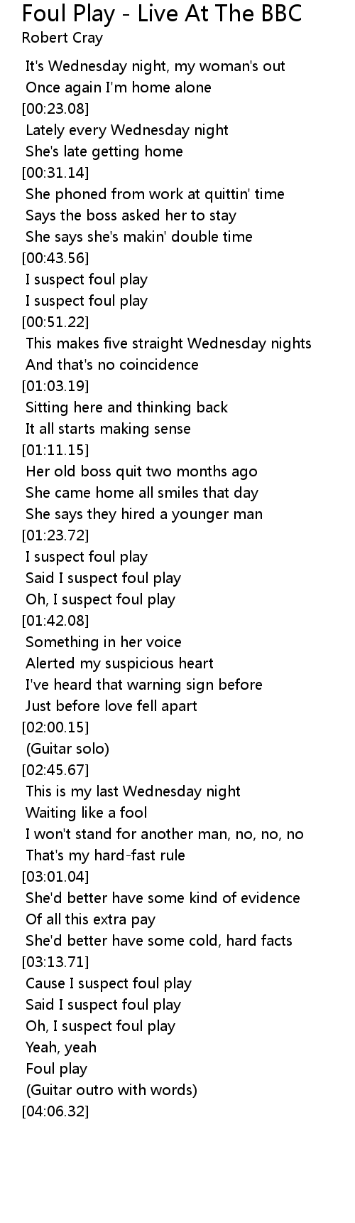 Cause I suspect foul play |