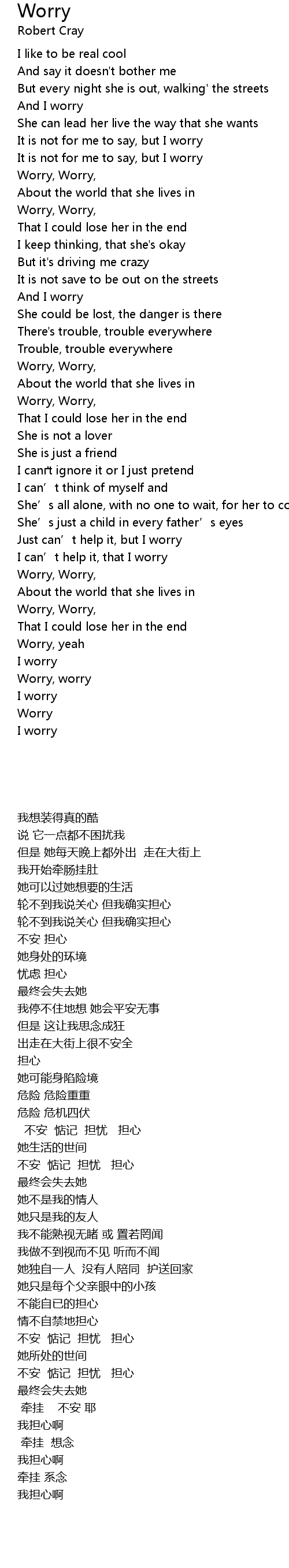 | Just can' t help it, but I worry | |
