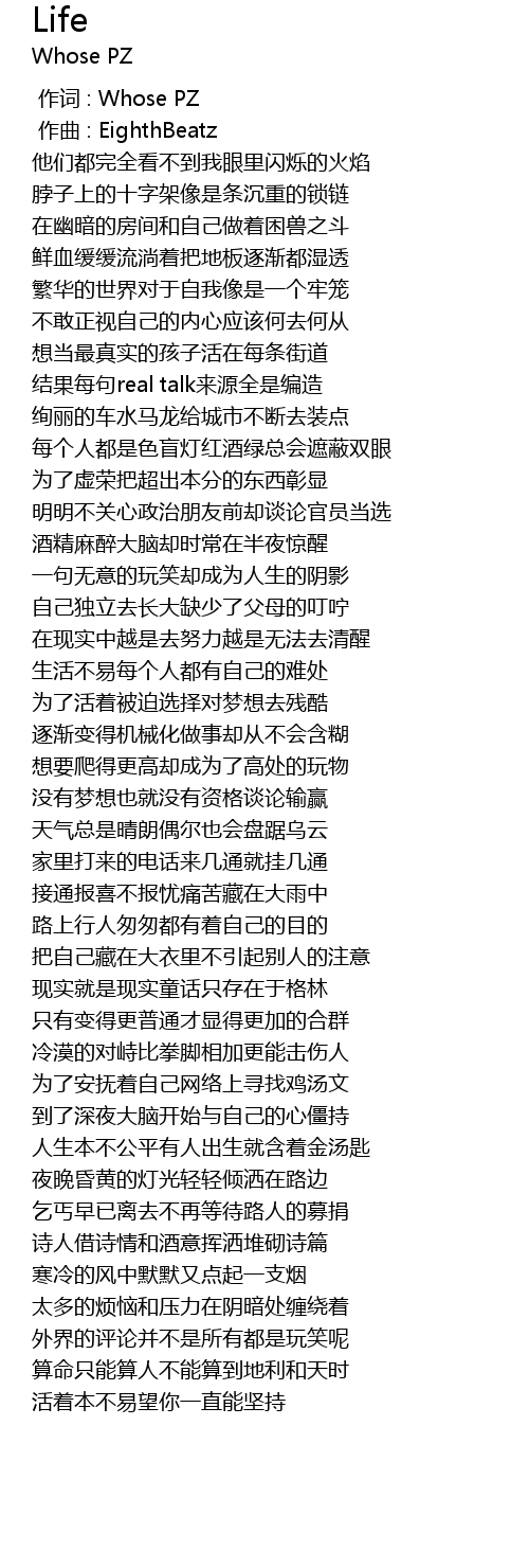 | [00:00.000] | 作词 : Whose PZ |