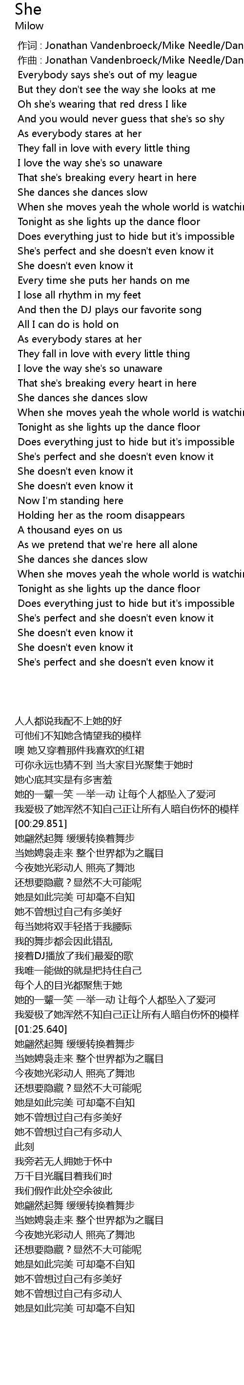 | [01:46.756] | She' s perfect and she doesn' t even know it |
