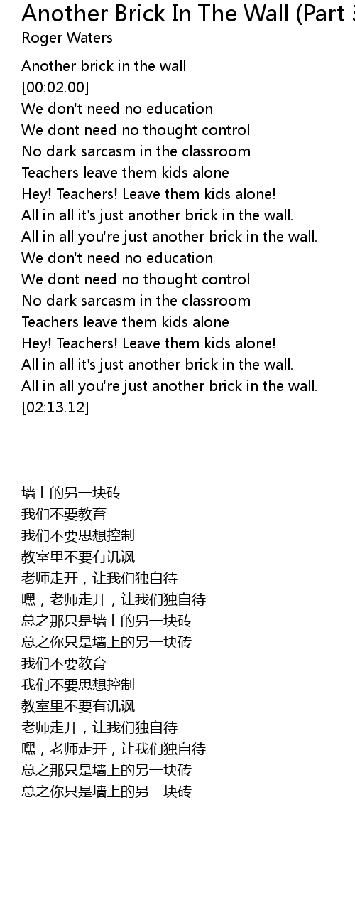 All in all it's just another brick in the wall. |