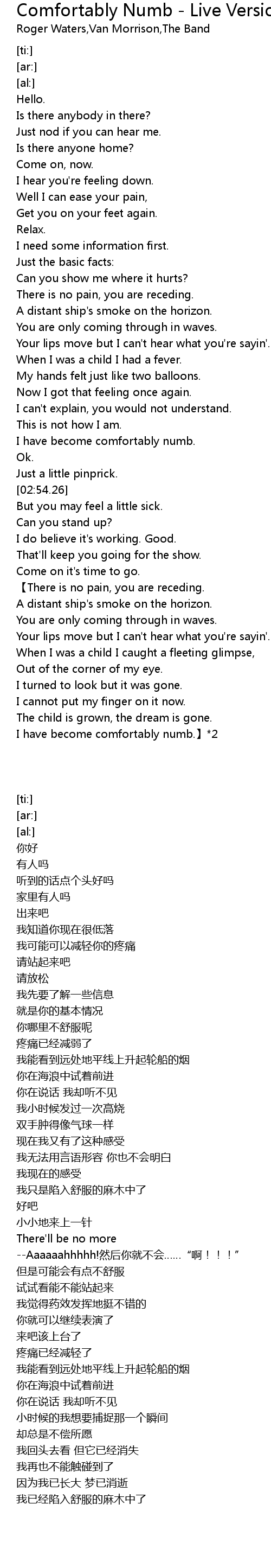 | [04:18.10] | I have become comfortably numb.】*2 |