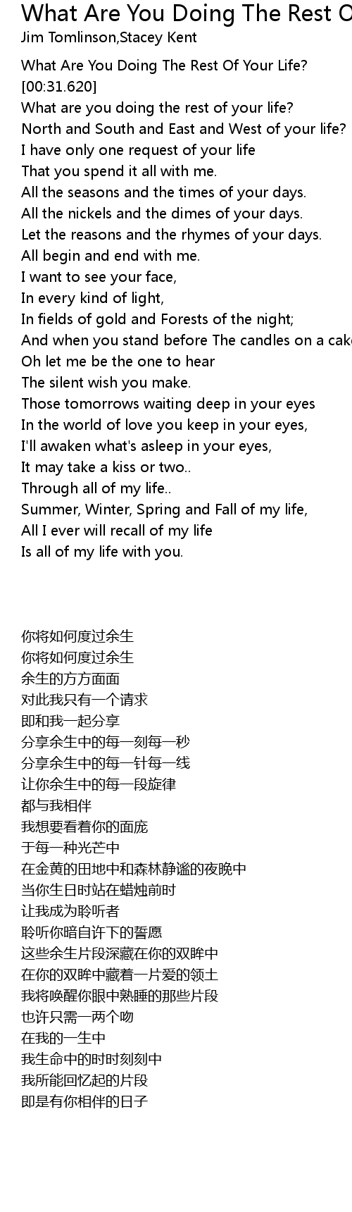 [00:29.120] What Are You Doing The Rest Of Your Life?