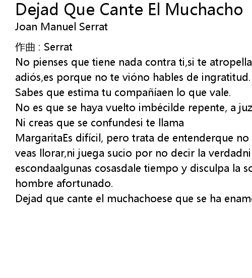 | Dejad que cante el muchachoese que se ha enamorado. |