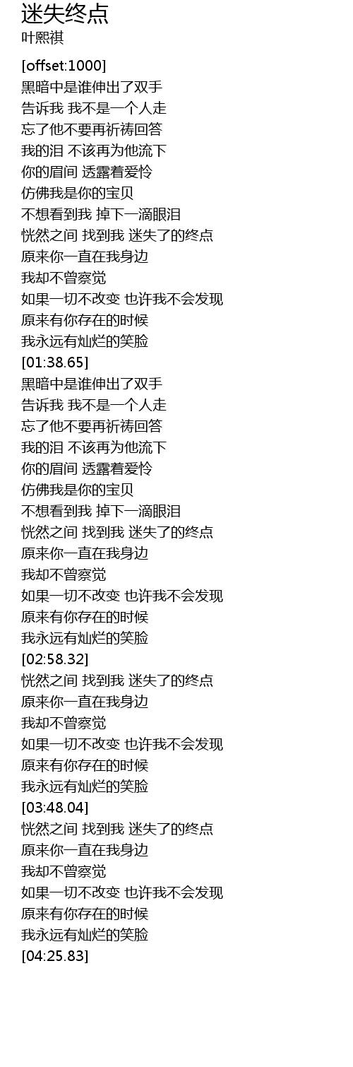 | [03:16.41] | 恍然之间 找到我 迷失了的终点 |
