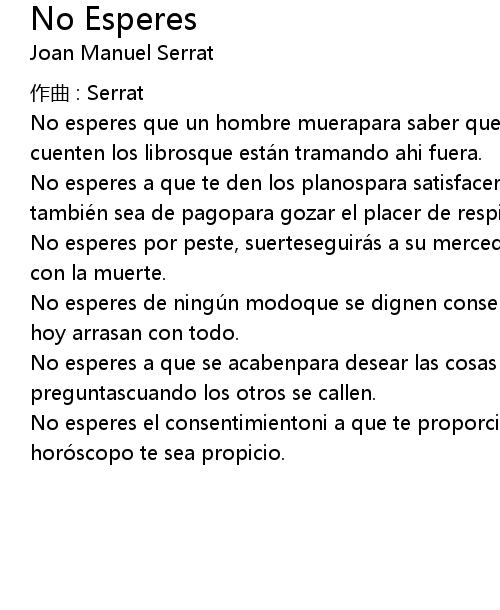| No esperes a que se acabenpara desear las cosas ma s que nuncani a responder las preguntascuando los otros se callen. | |