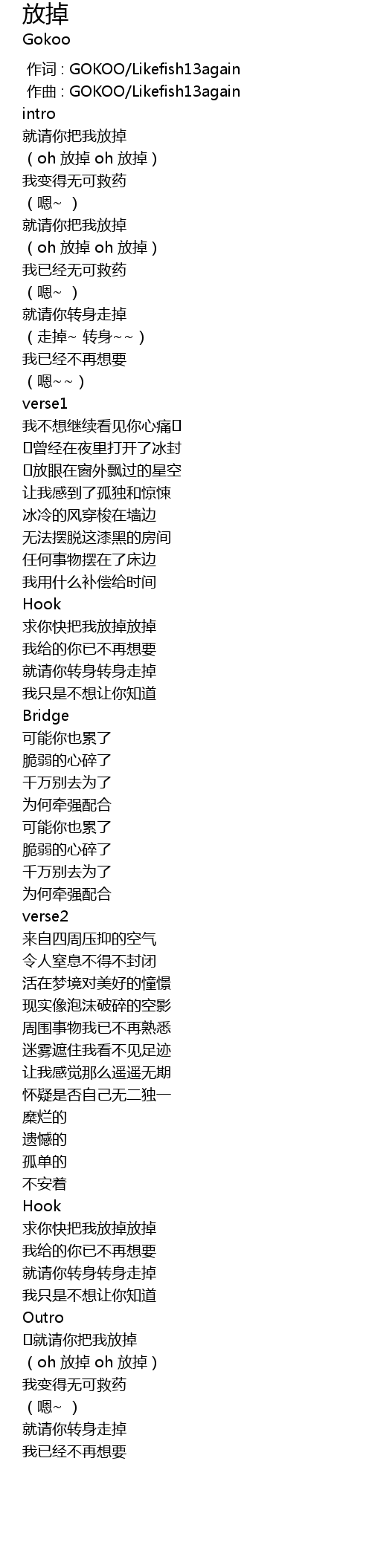 | [00:00.000] | 作词 : GOKOO/Likefish13again |