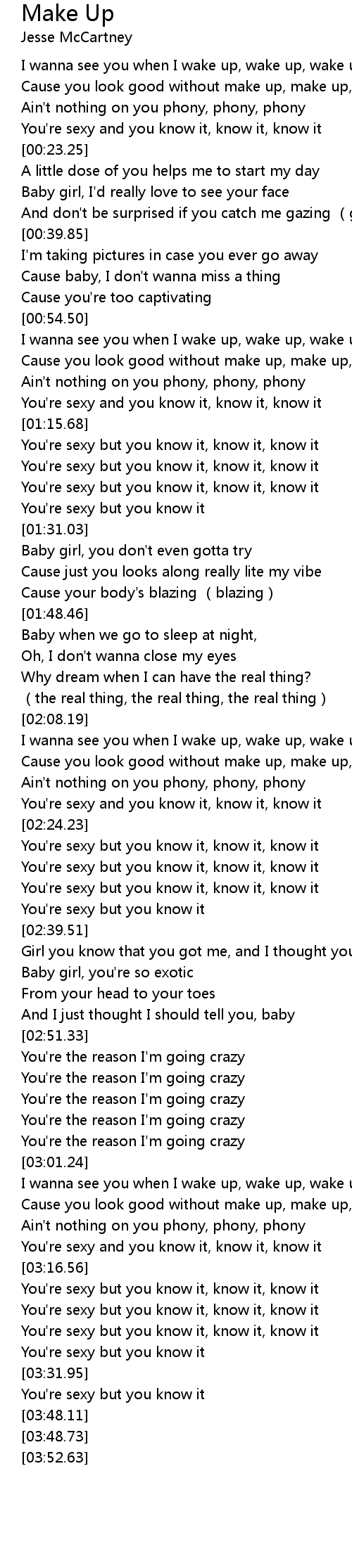 | [00:11.41] | Cause you look good without make up, make up, make up |