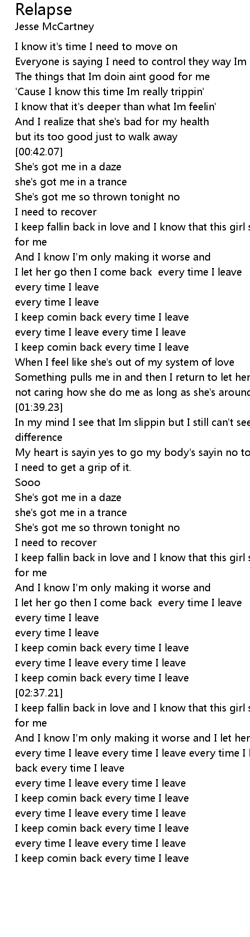 every time I leave every time I leave every time I leave I keep comin back every time I leave |