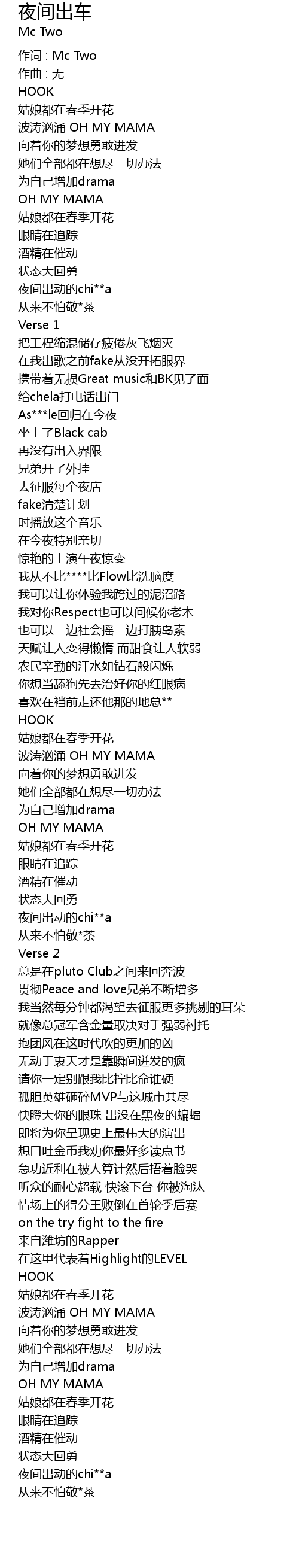 | 作词 : Mc Two | |