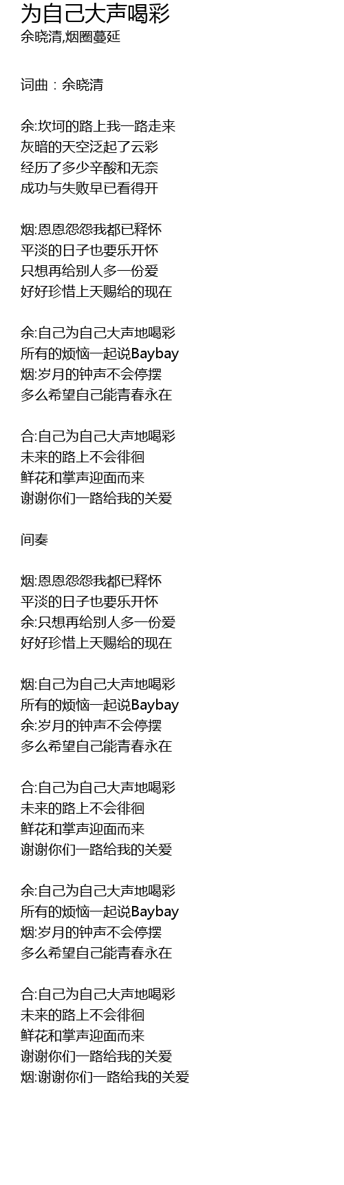 | yān: zì jǐ wèi zì jǐ dà shēng dì hè cǎi | |