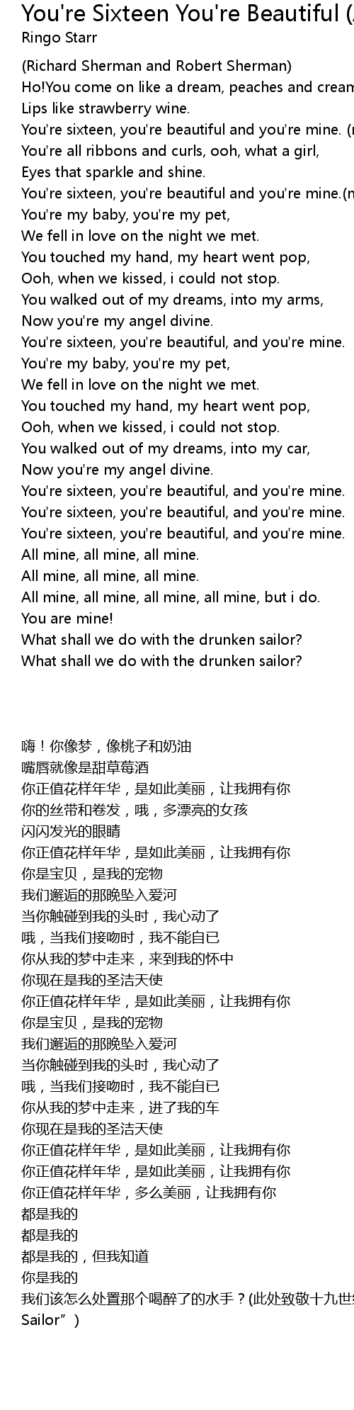 You're sixteen, you're beautiful and you're mine.(mine, all mine, mine, mine) |