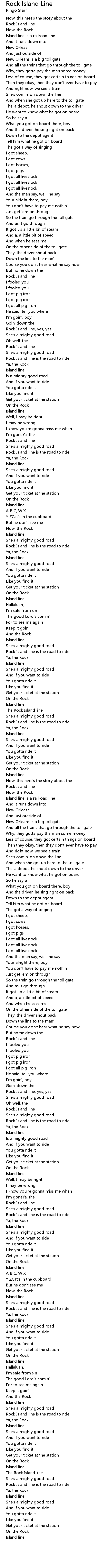 Rock Island line, yes, yes |
