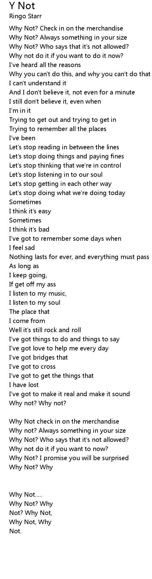 Not? Why Not? [Indian sounding lyrics and rhythm, with sitar] |