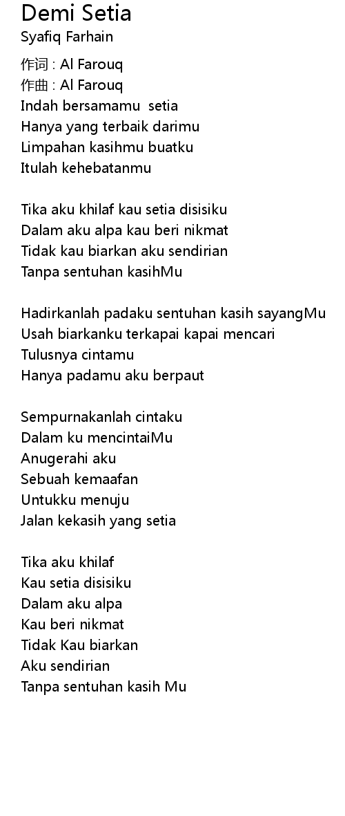 | Tika aku khilaf kau setia disisiku | |